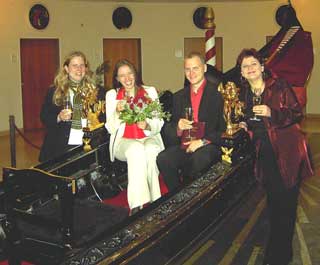| Begleitet von 2/3 ihrer Trauzeugen gondelten Martina und